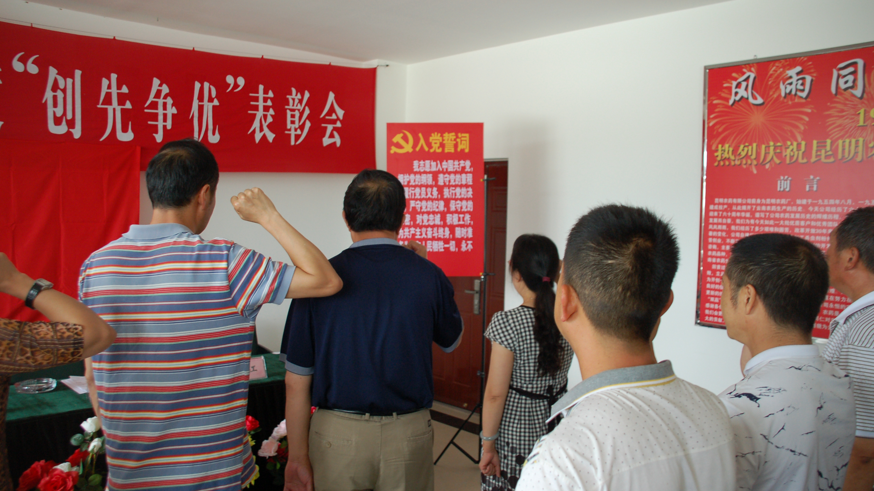 公司于2016年6月29日召開(kāi)2015年“創(chuàng )先爭優(yōu)”表彰會(huì ),會(huì )議上對公司2015年度“優(yōu)秀黨員”進(jìn)行了表彰,全體黨員重溫了入黨誓詞。