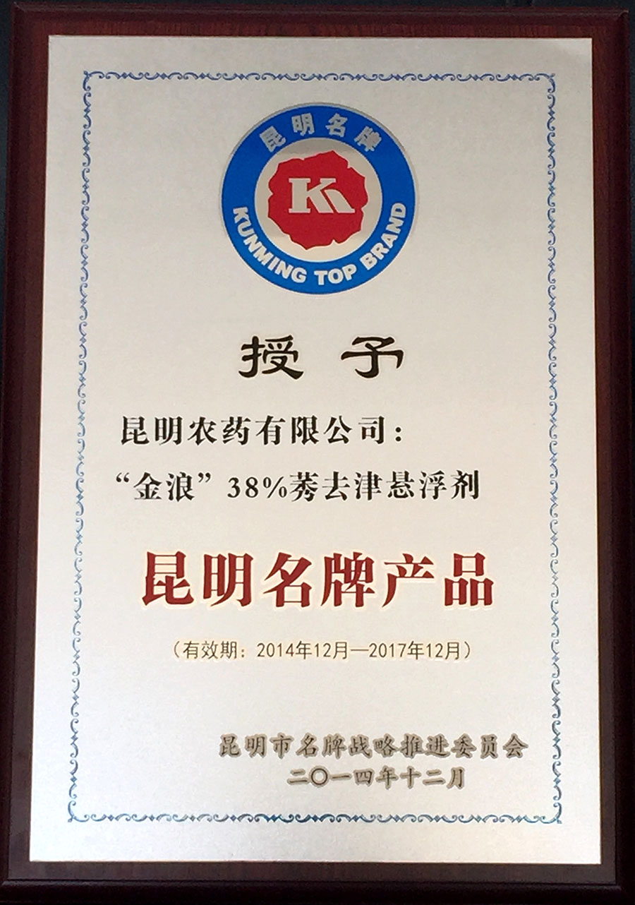 懸浮劑授予昆明名牌產(chǎn)品