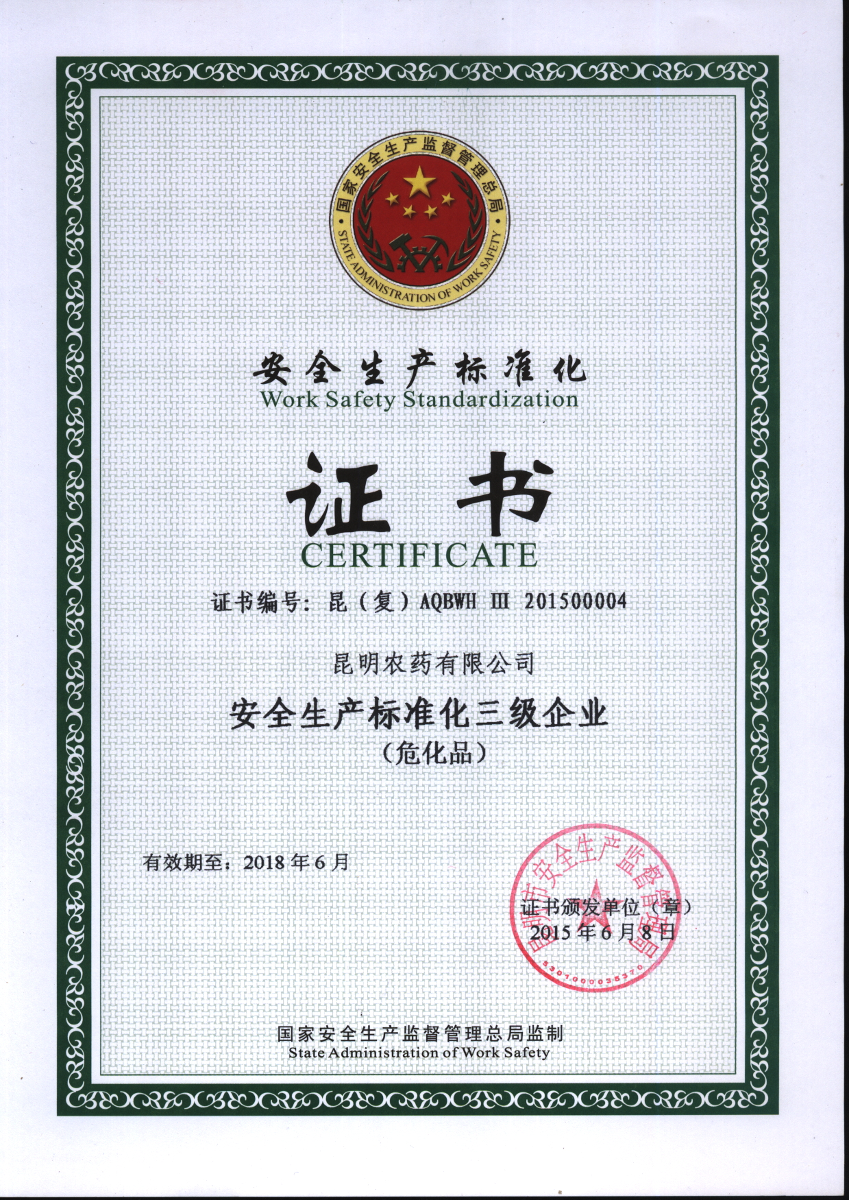 安全標準化證書(shū)