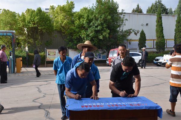 公司生產(chǎn)、設備部門(mén)管理人員在安全月活動(dòng)布標上簽名