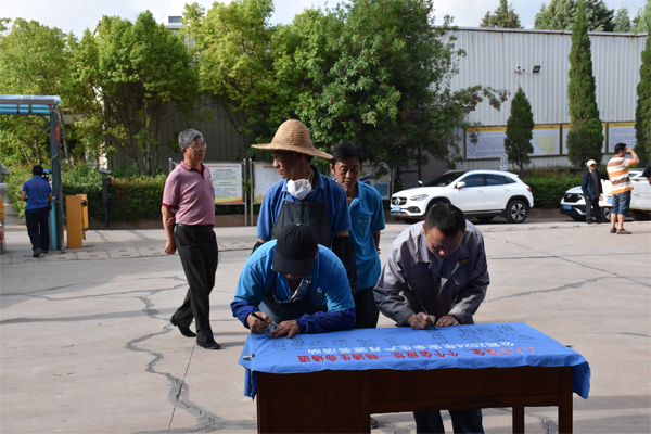 公司生產(chǎn)、安全、倉庫部門(mén)管理人員在安全月活動(dòng)布標上簽名