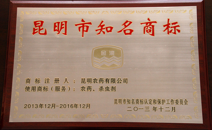 敵敵畏乳油授予為云南名牌產(chǎn)品
